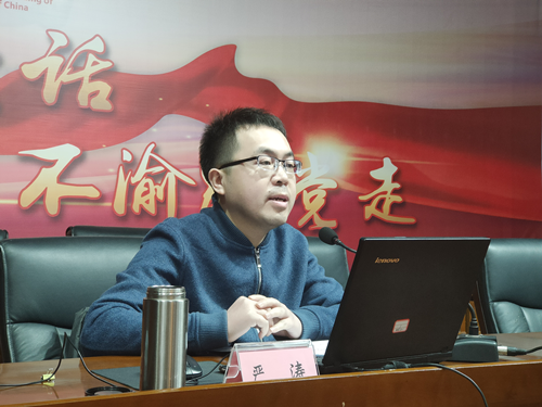 按照上级党委统一安排部署,1月12日下午,内江市委党史学习教育宣讲团成员、川南幼儿师范高等专科学校思政教学部副主任严涛来DB试玩 宣讲党的十九届六中全会、省委十一届十次全会和市委八届二次全会精神。公司领导班子成员、党员代表等48人参会。宣讲报告会由党委委员、纪委书记杜科主持。