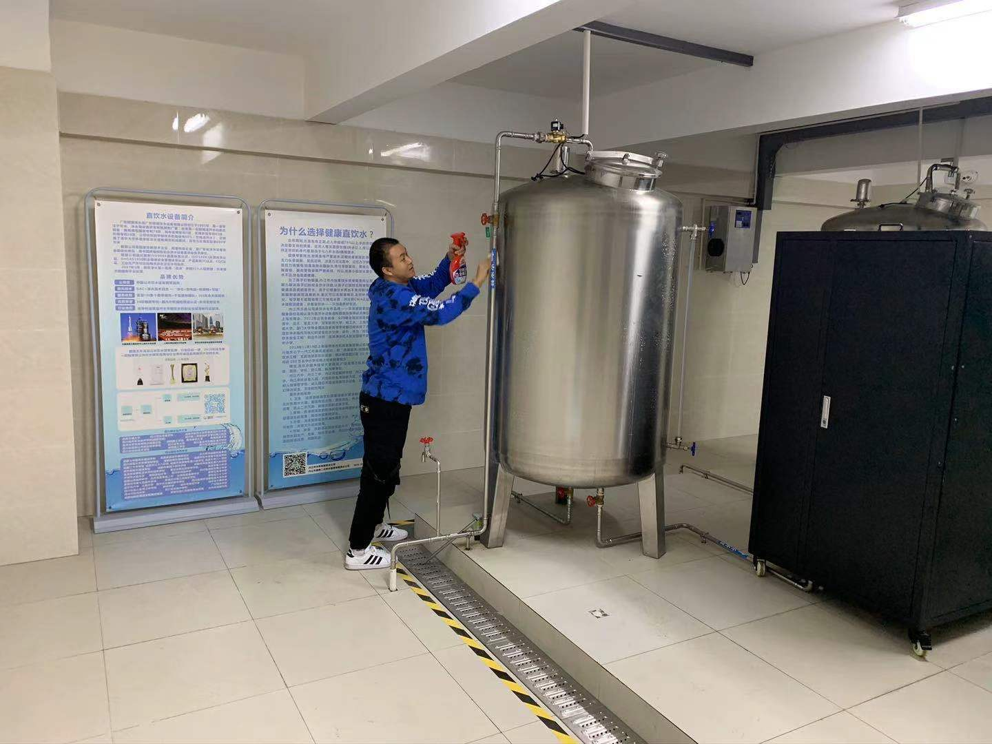 为切实做好内江六中高新校区新学期的直饮水系统启用工作,保障全校师生的饮水安全,豪鹏公司运维人员对校内直饮水系统集中开展了净水设备电器检查、净水软化盐补充、管道消毒、净水罐体内外和泵房环境卫生清洁消毒,以及终端净水设备恢复调试等系列工作,并抽取水样送专业水质检测机构检测,检测结果均符合直饮水饮用标准。豪鹏公司以其规范严谨的直饮水管理,得到了校方高度认可。
